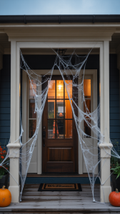 Look up! Your porch ceiling is prime spider web territory. Draping webs from ceiling corners down to the edges creates a canopy effect.