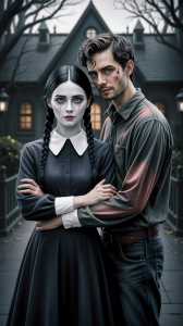 For Him: Choose either Tyler’s normcore casual look (jeans, simple shirt) or Xavier’s artistic, slightly emo aesthetic. Both work perfectly alongside Wednesday’s dark energy.